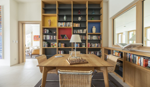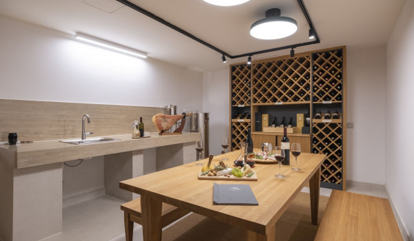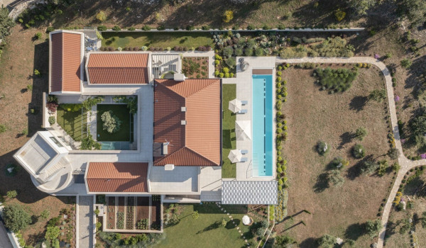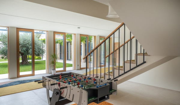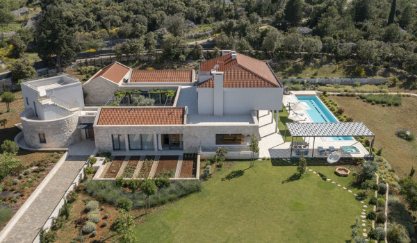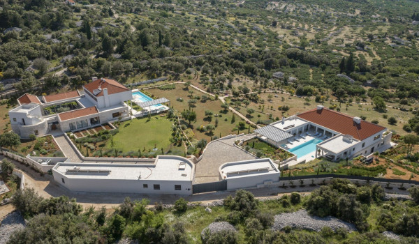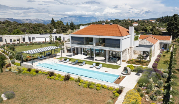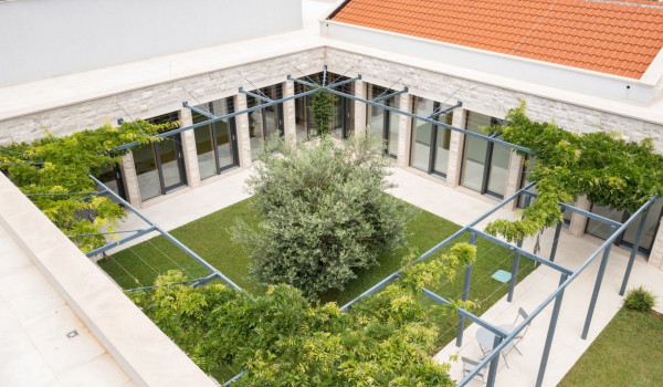 Stambeni dio ove jedinstvene luksuzne vile za najam u Hrvatskoj i odmor prostire se na 700 m2 na 2 kata (prizemlje i prvi kat), povezanih stepenicama i dizalom. Ova luksuzna bračka kuća za odmor ima luksuzno dizajniran interijer s ukupno 6 spavaćih soba (3 od kojih su unutar 3 luksuzne suite jedinice), 2 kuhinje, 6 kupaonica, salon/dnevni boravak, knjižnica/medijska soba, teretana i podrum za vino/maslinovo ulje. Luksuzna vila na Braču za 12 je zaista zanimljivo arhitektonsko remek-djelo koje skriva posebno blago u samom srcu vile - unutarnje dvorište s savršenom travnjakom, fontanom i stogodišnjim maslinovim drvetom kao centralnom točkom.