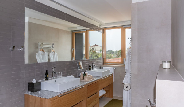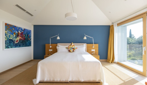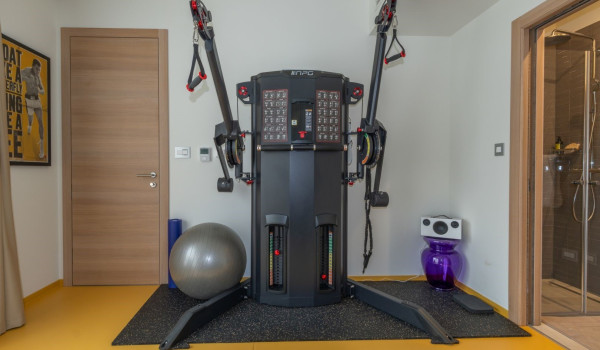Takozvani "toranj za meditaciju" još je jedan zanimljiv arhitektonski detalj ove vile s liftom i privatnim bazenom za odmor s prijateljima i obitelji, a u njemu se nalazi sauna s prostorom za tuširanje i potpuno opremljena teretana s izravnim pristupom unutarnjem dvorištu, dok se na gornjem katu tornja, do kojeg se dolazi stepenicama, krije soba od 20 m2 s kupaonicom i krovnom terasom do koje vode stepenice. Na prvomkatu smješten je "master suite" te 2 spavaće sobe, od kojih jedna soba s 2 odvojena kreveta može biti povezana s glavnom spavaćom sobom kako bi služila kao obiteljska soba, ali može se koristiti i kao samostalna jedinica. Ova soba dijeli dugu sunčanu terasu s master sobom pružajući prekrasan pogled na more, bazen i posjed.