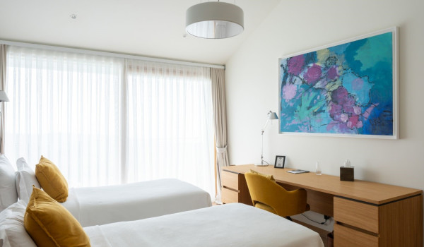 Ukupno 6 spavaćih soba koje ova luksuzna kuća za obiteljski odmor na Braču ima podijeljeno je u tri sobe s twin krevetima i tri dodatne sobe s bračnim krevetima super king dimenzija (koji se mogu podijeliti na pojedinačne) i vlastitim kupaonicama. Suite jedinice su opremljene televizorima Samsung veličine 55', krevetima super king dimenzija, dnevnim boravcima s vlastitim terasama i kupaonicama s dvostrukim umivaonicima, tuševima i kadama. Sve sobe imaju drvene podove, prostrane ormare i garderobni prostor, radni dio, te zavjese za zamračivanje.