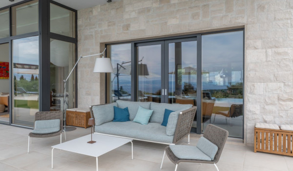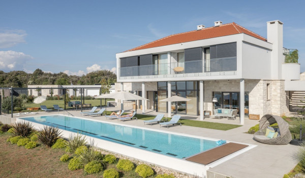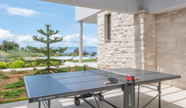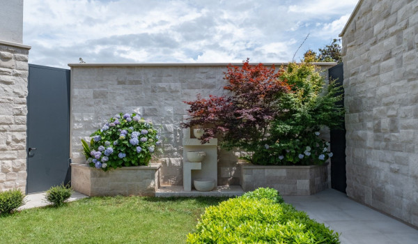 Posebno mjesto u ograđenom dvorištu vile zauzima popločani dio oko privatnog preljevnog grijanog bazena s pokrovom, pored kojeg se nalazi ugradbeni jacuzzi, dobro opremljena ljetna kuhinja s profesionalnim roštiljem, pećnicom za pizzu pored proširivog stola i stolica, savršen ambijent za nezaboravno iskustvo al fresco blagovanja.