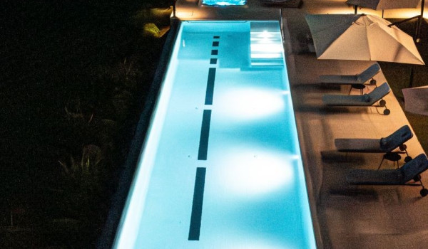 Na prostranoj glavnoj terasi ove ekskluzivne kuće za odmor na Braču nalazi se privatni grijani bazen za plivanje duljine 22 x 5 m, okružen udobnim ležaljkama, pored kojeg se pod verandom nalazi jacuzzi za 4 osobe, a nekoliko koraka dalje od jacuzzija nalazi se moderna vanjska ljetna kuhinja s umivaonikom, hladnjakom, šankom, profesionalnim roštiljem i krušnom peći za pizzu te garniturom za jelo na otvorenom za 12 osoba (+12).