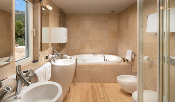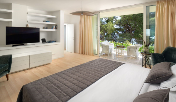 Luksuzna bračka vila s grijanim bazenom uz more Castello Bol ima 6 spavaćih soba s 12(+4) ležaja, 6 en suite kupaonica i prikladna je za smještaj do 16 osoba (12+4).