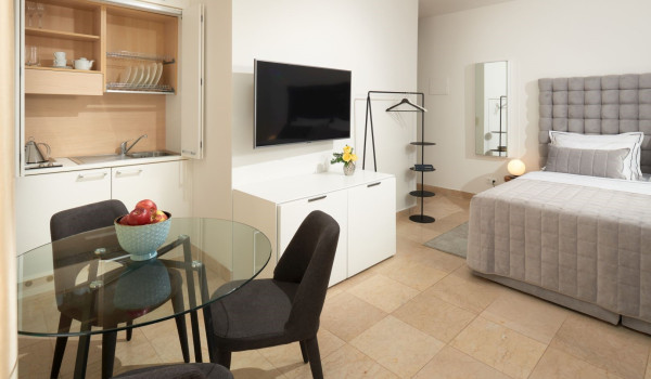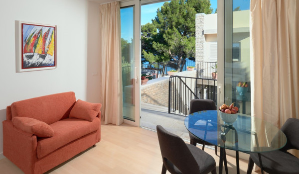 Prvi rezidencijalni objekt kuće za odmor uz more Castello Bol smješten bliže moru dijeli se na dva kata, odnosno prizemlje i prvi kat. U prizemlju se nalazi moderna kuhinja sa zatvorenom blagovaonicom, kao i prostrani dnevni boravak s unutrašnjim kaminom. Na prvom katu ove vile za najam na plaži je glavna spavaća soba s privatnom kupaonicom, koja je opremljena hidromasažnom kadom i tušem, velikom garderobom te balkonom s kog se pruža predivan pogled na more. Uz glavnu kupaonicu smjestila se još jedna spavaća soba s bračnim krevetom, privatnom kupaonicom s tušem i balkonom, kao i privatna teretana opremljena kućnom biciklom, malim utezima i ostalom opremom za laganu rekreaciju.