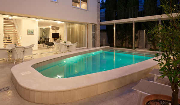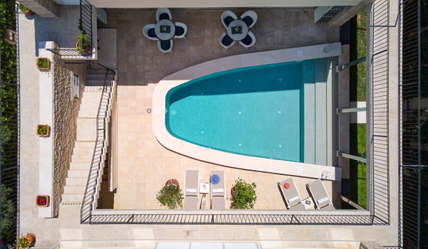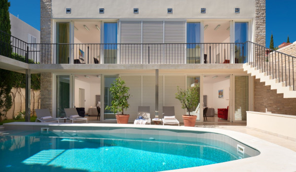 Luksuznu vilu za odmor s grijanim bazenom Castello Bol krasi izuzetno moderan dizajn i specifičan eksterijer, koji unatoč svojim suvremenim karakteristikama i „odskakanjima“ ni u kom pogledu ne narušava izvorni otočni identitet ove prirodne oaze u srcu Jadrana. Površina ove vile za najam prvi red do mora na Braču je 300 m2 te se dijeli na dvije odvojene cjeline, povezane unutarnjim dvorištem.