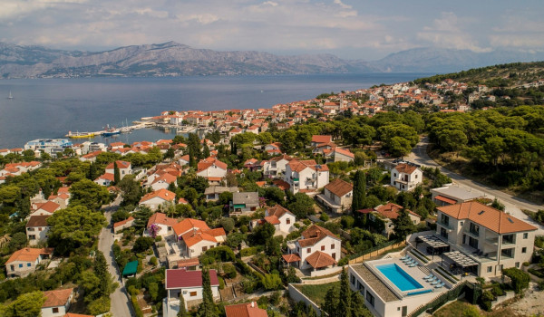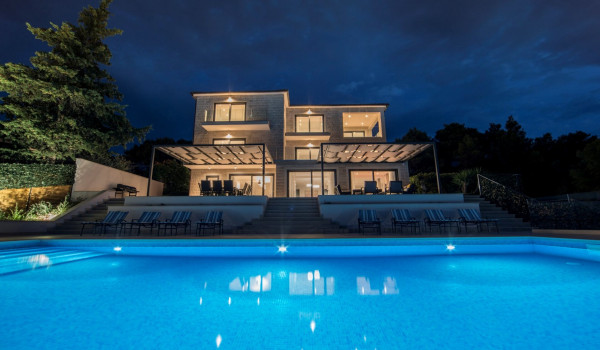 Udaljenost luksuzne vile za najam od mora je 200 m, te 400 m od centra Postira.