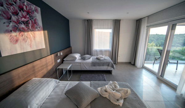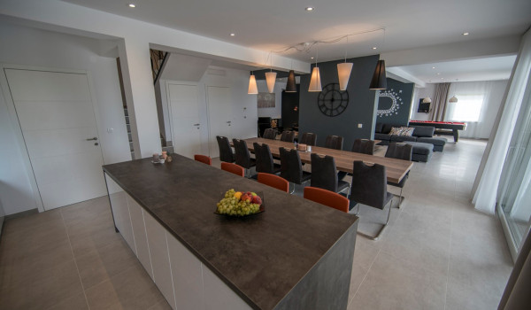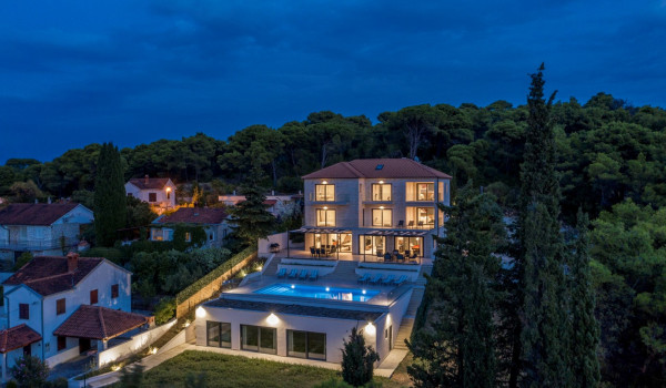 Ova luksuzna hrvatska vila za najam koja spaja tradicionalne i moderne elemente nalazi se na posjedu ukupne površine više od 1000 m2, dok stambeni dio zauzima 570 m2. Podijeljena je na tri etaže koje su međusobno povezane unutarnjim stubištem. U prizemlju se nalazi potpuno opremljena kuhinja s blagovaonicom, dnevni boravak, dio za razonodu te dodatni toalet. Na prvom i drugom katu se nalaze po tri sobe sa pripadajućim kupaonicama i balkonima.