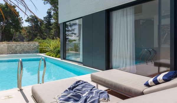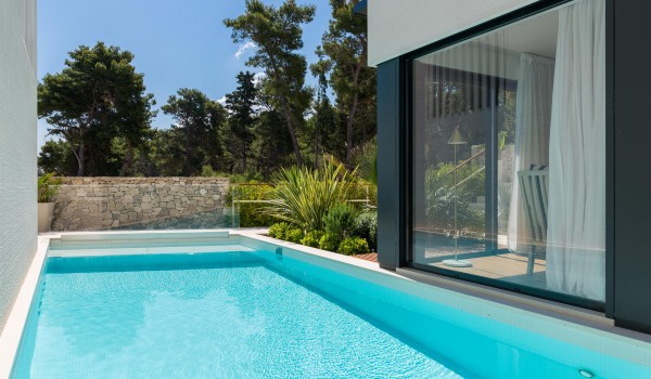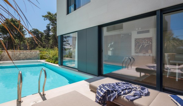 Luksuzna vila za odmor Sutivan 2 s grijanim preljevnim bazenom, veličanstvena je bračka luksuzna vila koja se nalazi samo 20-ak metara od mora i šljunčane plaže te 1 km od centra Sutivana.