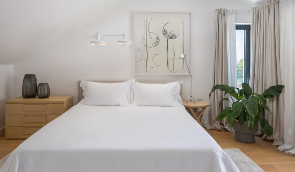 Na drugom katu ove luksuzne vile za najam također se nalazi master spavaća soba s bračnim krevetom, garderobom, kupaonicom s tušem i balkonom s prekrasnim pogledom na more. Soba je opremljena SAT TV-om i klimatizirana.