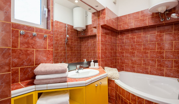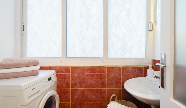 Preko puta dviju spavaćih soba, sa lijeve strane, nalaze se 1 kupaonica i 1 gostinjski toalet. Unutar prostrane kupaonice nalazi se kada, umivaonik, toalet, ručnici te ostale potrebne toaletne potrepštine kako bi mogli bezbrižno boraviti u ovom splitskom privatnom luksuznom apartmanu, dok se u toaletu nalazi i perilica rublja.
