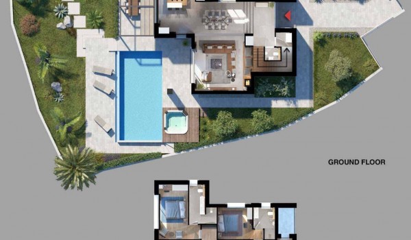 Posjed ove privatne vile prostire se na 400 m2, a njen stambeni dio zauzima površinu od 270 m2. Luksuzna vila na plaži prostire se na dvije etaže: prizemlje i prvi kat.