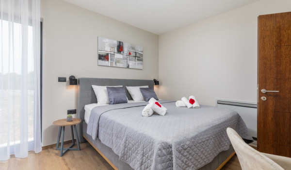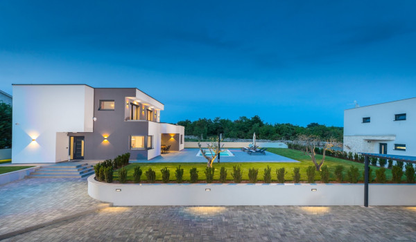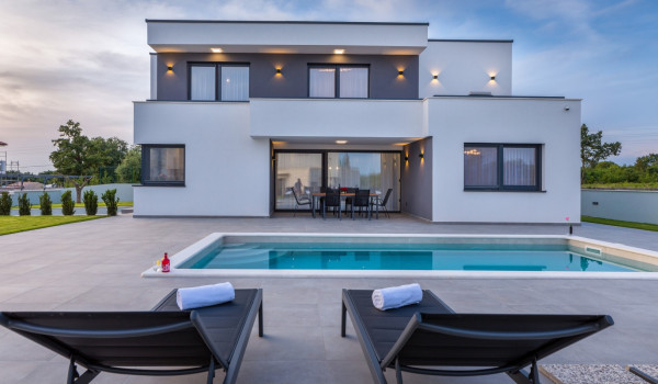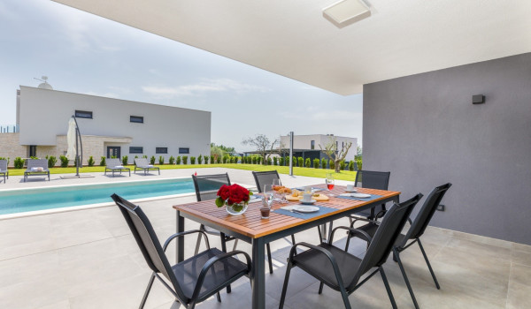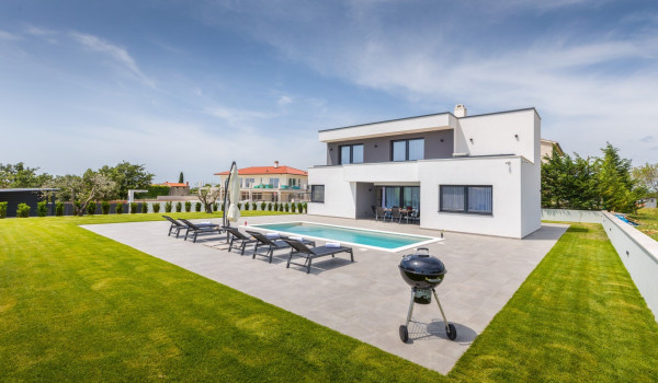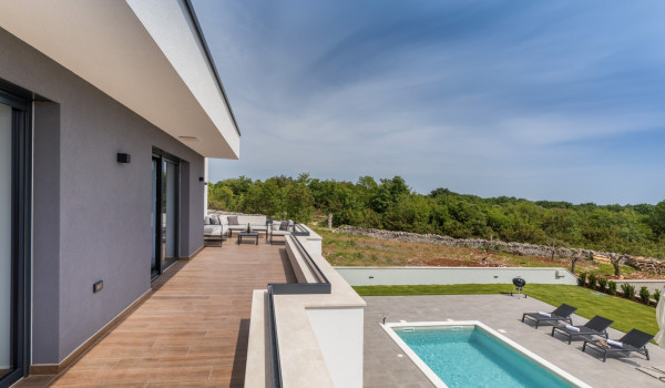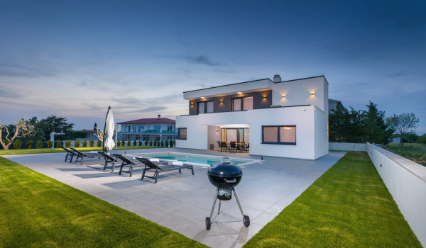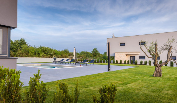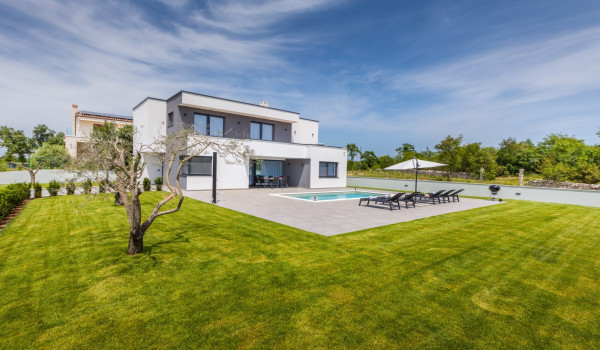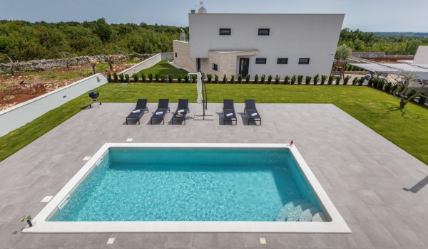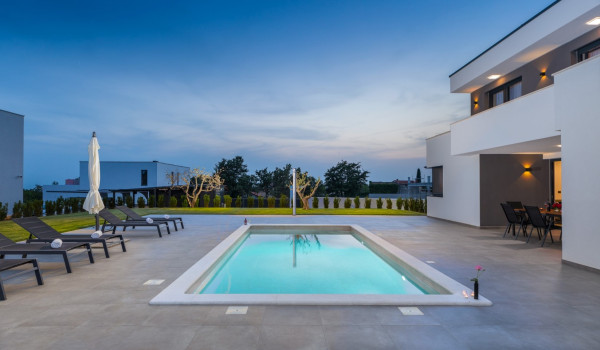 Luksuzna vila s bazenom je kuća za odmor u Istri koja se nalazi na prekrasnom posjedu s velikom terasom okruženom mediteranskim biljem s koje se pruža predivan pogled na okolnu prirodu. Gosti na raspolaganju imaju grill za pripremu brojnih dalmatinskih specijaliteta te vanjski stol za objedovanje za 8 osoba. Veliki bazen za plivanje (32 m2) okružen je ležaljkama za sunčanje, a pokraj bazena nalazi se lijepo uređen vrt i vanjski tuš.