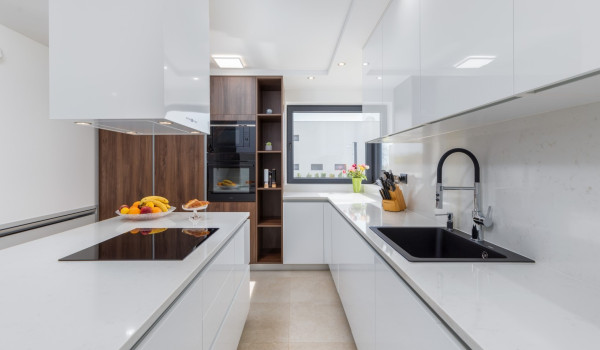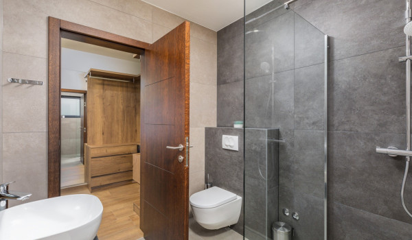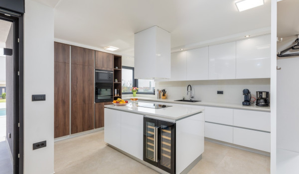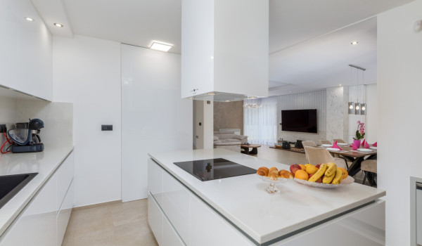 Ova luksuzna privatna vila za odmor i najam u Istri ima potpuno opremljenu kuhinju s otokom, prostrani dnevni boravak i 4 spavaće sobe s en-suite kupaonicama te dodatni toalet.