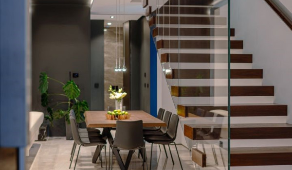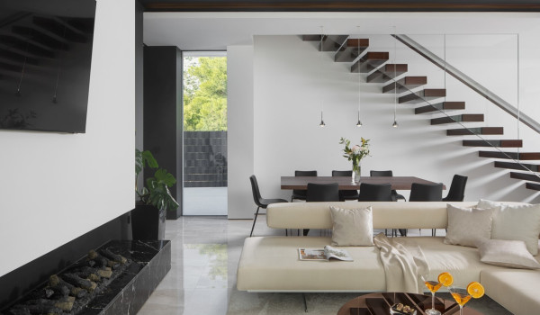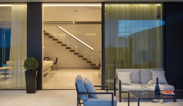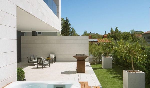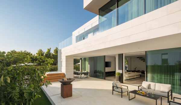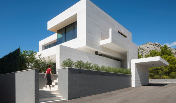 Tehnika gradnje, prirodna tekstura i bijeli kamen utkani su na poseban način kao glavni vizualni element u arhitekturi ove prekrasne skladno projektirane luksuzne kuće za odmor.