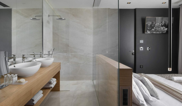 Stepenicama dolazimo na prvi kat vile za najam u Starigradu Calmissima gdje su svoje mjesto zauzele četiri luksuzne komforne spavaće sobe. Dvije spavaće sobe imaju king size krevet (200 X 210 cm), SAT TV, klima – uređaj, en suite kupaonicu s kadom i walk-in tušem, 2 umivaonika, te izlaz na terasu. Preostale dvije luksuzno dizajnirane spavaće sobe imaju king size krevet s en suite kupaonicom s walk-in tušem i 2 umivaonika.