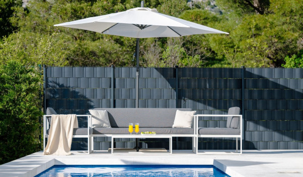 Luksuzna kuća za odmor Calmissima ima privatni bazen dimenzija 39 m2 sa sustavom grijanja, okružen ležaljkama, suncobranima, vanjskim tušem, jacuzzi, te natkriveni vanjski blagovaonski dio s obitavajućim stolom za 8 osoba.