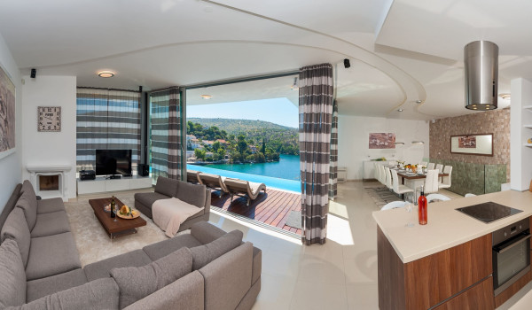 Наслаждайтесь роскошным отдыхом в этой современной красоте, расположенной в тихой и уединенной бухте Бобовишча. Элегантность, но вместе с тем простота виллы, несомненно, подарят каждому гостю настоящий средиземноморский отдых мечты!