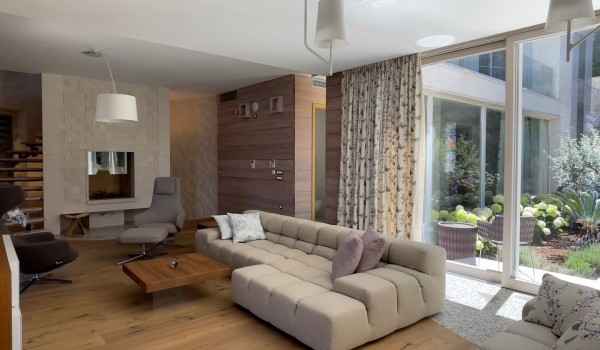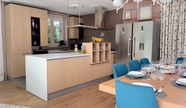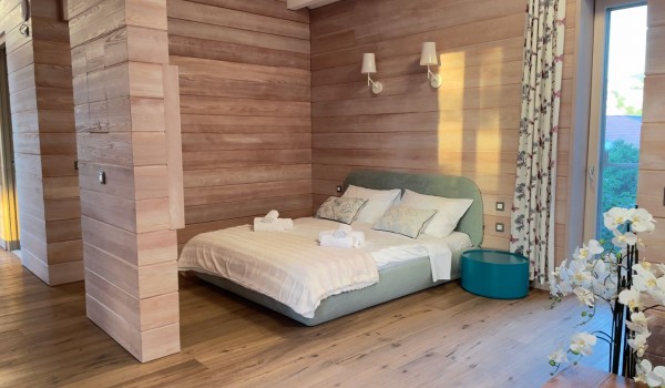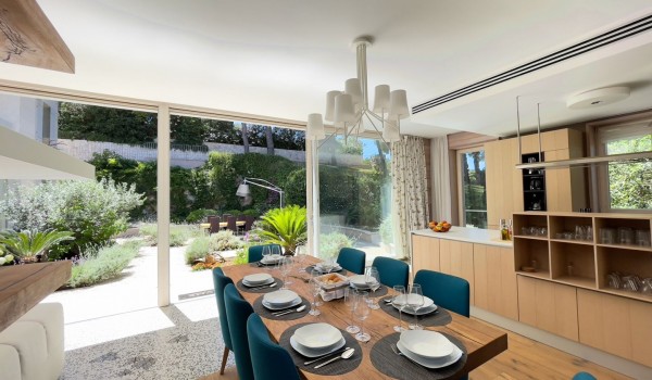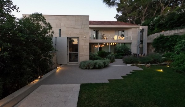 Эта вилла для аренды и отдыха занимает участок площадью 2000 м2 с жилой площадью 380 м2 и состоит из подвального, цокольного и первого этажей.