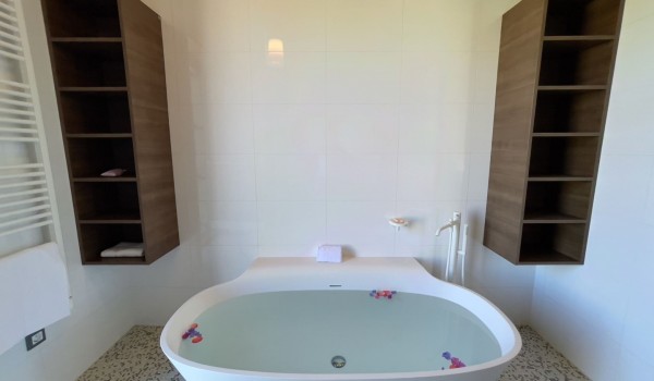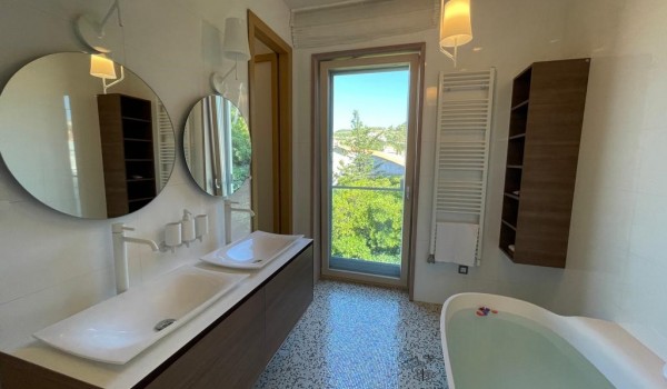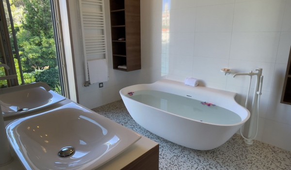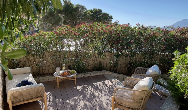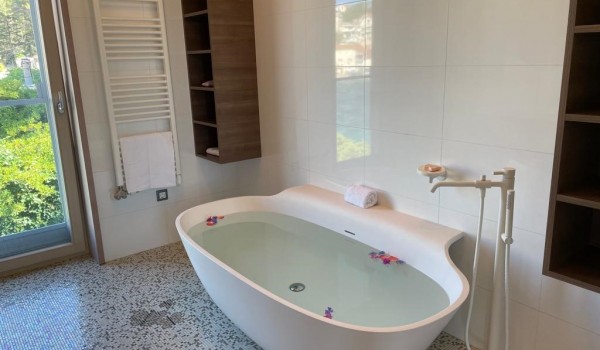 Перед этой неповторимой приватной виллой у дороги есть бесплатные места для парковки для гостей. В красивом и просторном дворе этого оазиса есть большой приватный подогреваемый бассейн с шезлонгами и зонтиками, окружённый деревьями, создающими естественную тень и приятную для отдыха атмосферу. Мы приложили много усилий и вложили средства в хортикультуру, являющуюся отличительной чертой, благодаря которой вы испытаете волшебные и расслабляющие моменты во дворе с приятными ароматами средиземноморских растений. В нескольких шагах от двора этой виллы, где разрешено проживание с домашними животными, расположен галечный пляж с чистым бирюзовым морем.