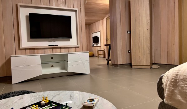Войдя в двери подвала элитной виллы с Частный бассейном Lilly , мы видим просторную прихожую с высокими потолками и лестницей, внутри неё полукруг с королевско розовым дизайнерским креслом для отдыха с любимой книгой. Далее расположена спальня с раскладным диваном-кроватью для комфортного проживания двух человек и отдельное помещение с сауной и душем для максимального удовольствия и отдыха. Подвал соединён с цокольным этажом лестницей. Кроме того, особенностью элитной виллы Lilly является наличие лифта, соединяющего все этажи.