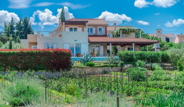 Вилла Mediterranean окружена тщательно ухоженным садом, богатым зеленью, овощами и ароматными травами.