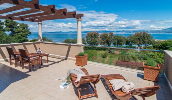 Если вы предпочитаете купаться в море, то с территории виллы Mediterranean можете спуститься к морю по благоустроенной дорожке, ведущей прямо к галечному пляжу. Маршрут проходит мимо виноградников и сада, где гости могут свободно собирать органически выращенные сезонные овощи и фрукты или средиземноморские специи.