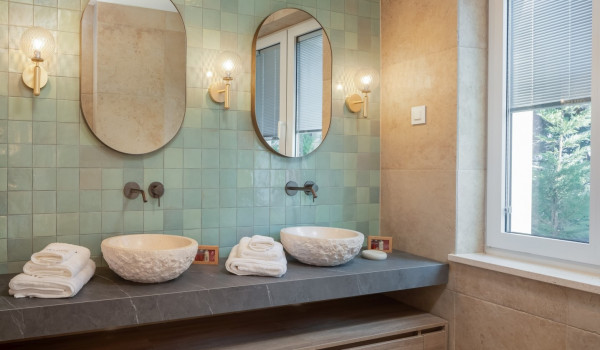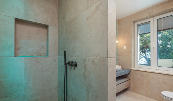 На втором этаже находятся две спальни с ванными комнатами. Каждая спальня просторная и оборудована кондиционером и имеет замечательный вид с террасы. Уютные спальни воздушны и имеют удобные кровати King size размером 2х2 метра, оборудованные постельным бельем для гостей. В спальнях есть ванные комнаты с сантехническими элементами и мебелью для ванных комнат, а также санузлом и душем, феном и халатами, шампунями и полотенцами для гостей, чтобы у них было все необходимое во время пребывания в вилле. Чтобы расслабиться на солнце в уникальной обстановке этой роскошной хорватской виллы, гости могут свободно использовать балконы с мебелью для отдыха и позволить себе увлечься замечательным видом и ароматом эфирных растений и деревьев.