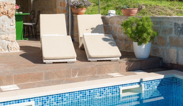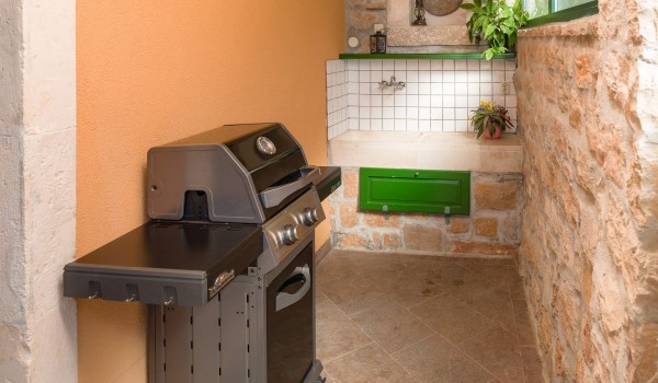 Croatian luxury villa for a family vacation Miss O, in addition to a charming interior, also offers a pleasantly decorated and sun-drenched exterior. On the terrace, a special place is occupied by the outdoor swimming pool (20m²) surrounded by comfortable deckchairs. It is on this terrace that you can enjoy all the moments of your vacation. Enjoy and relax all your senses under the warm rays of the sun throughout the day or on romantic evenings with a sky full of stars. Next to the swimming pool, there is also a summer kitchen where you can prepare various delicacies of the Dalmatian climate.