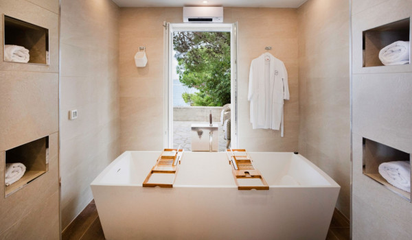 Эта роскошная частная хорватская вилла - это место, которое предлагает полную конфиденциальность в сочетании с абсолютной элегантностью. Она была построена в 1960 году, а внутренние и внешние пространства были заботливо оформлены роскошной мебелью и особыми арочными сводами. То, что придает этой вилле особый шарм, - это бассейн бесконечности, который кажется сливается с морем. Из него открывается великолепный вид на бескрайнее море с красивыми маленькими островами, и это идеальное место для целодневного наслаждения. Эта вилла на пляже предоставляет своим гостям уют и идеальный комфорт, окруженные аутентичной средиземноморской зеленью. С частным пляжем и большими каменными арками, высеченными в скалах, она неизменно привлекает внимание всех, кто видит ее с моря.
