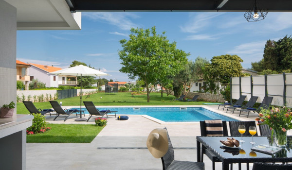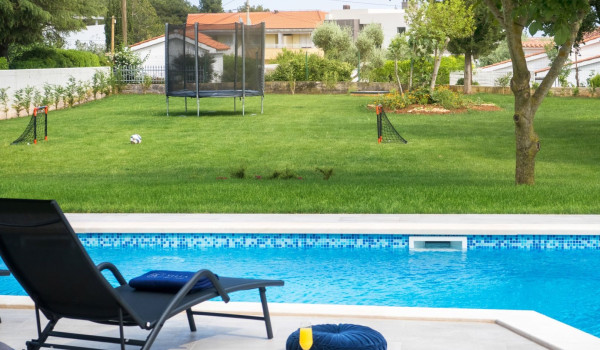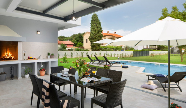Прибыв на территорию этой истрийской красоты, вы обнаружите ухоженный двор с зеленым садом, оборудованным детской площадкой, батутом и очаровательным беседкой для отдыха под ветвями деревьев. В центре двора находится большой частный бассейн (40 м2), вокруг которого расположены шезлонги для загара и отдыха у бассейна. В нескольких шагах от бассейна находится крытая терраса этой современной семейной истрийской виллы, оборудованная летней кухней под открытым небом с грилем и обеденным столом на 8 человек.