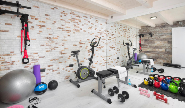 Недалеко от террасы с частным бассейном также есть частный тренажерный зал, чтобы поддерживать свою ежедневную физическую активность.