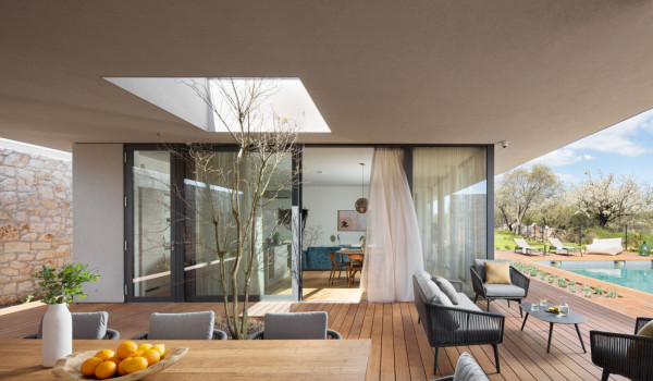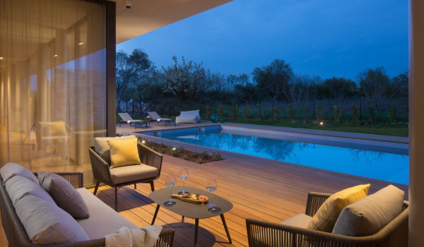 Роскошная средиземноморская вилла в Истрии с подогреваемым бассейном идеально подходит для комфортного проживания 8 человек.