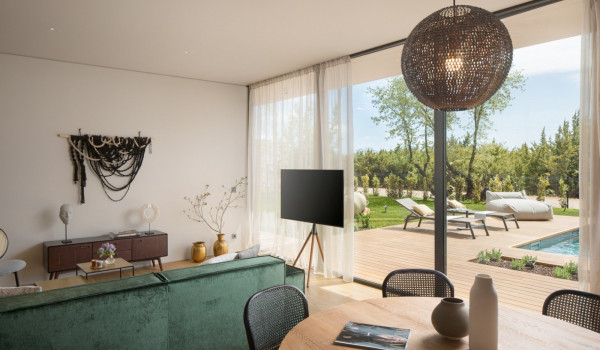 Участок этой роскошной истрийской виллы для отдыха занимает площадь 913 кв. м, а жилая часть - 222 кв. м. Роскошная вилла Serenity Pula 2, в которой разрешено проживание с домашними животными, представляет собой современный одноэтажный дом, который впечатляет красивым интерьером и экстерьером с просторным садом, подогреваемым бассейном площадью 50 кв. м, сауной и уличной гостиной с мангалом.