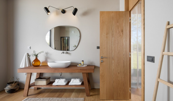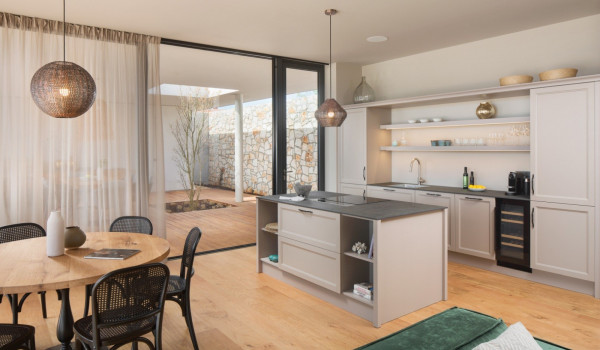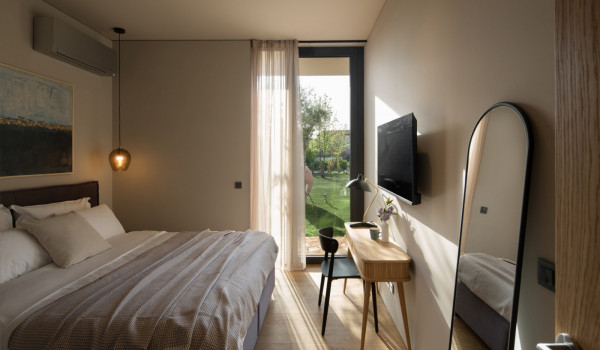 Из сада вы входите в открытое пространство этой роскошной истрийской виллы через большие стеклянные стены. Помимо полностью оборудованной кухни с плитой, духовкой, вытяжкой, посудомоечной машиной, холодильником с морозильником, тостером, микроволновой печью, винным холодильником, ледогенератором и кофе-машиной Nespresso, здесь также есть обеденный стол на 8 человек и уютная гостиная с мебелью и ЖК-телевизором, а также беспроводной аудиосистемой SONOS, которая охватывает всю виллу и предоставляет новый способ прослушивания музыки. Все пространство доминируют нейтральные цвета и современный дизайн, а свет, который освещает все комнаты, придает особую теплоту всему пространству. Справа от этой виллы для аренды, в продолжении гостиной, есть просторный коридор, ведущий к спальням и ванным комнатам. Справа от коридора находятся 4 спальни с кондиционерами, шкафами, ЖК-телевизорами и Wi-Fi. В первой и третьей спальнях есть двуспальные кровати, а во второй и четвертой - по две односпальные кровати, которые можно объединить в двуспальную. Слева от коридора находятся три кондиционированные ванные комнаты. В первой ванной комнате есть душ и туалет, во второй - сауна, душ и зона отдыха, а в третьей - душ и туалет. Также на первом этаже есть гостевой туалет.