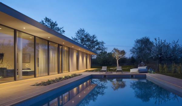 Роскошная хорватская вилла Serenity Pula 2 с подогреваемым бассейном для аренды расположена на просторном участке, окруженном тишиной и зеленью. Центральное место в ухоженном саду занимает подогреваемый бассейн (50 м2) с массажной функцией, окруженный современными шезлонгами для загара. На плато вокруг бассейна есть уютная зона отдыха и открытая гостиная с обеденным столом и газовым грилем. Стеклянные стены этой современной истрийской семейной виллы для аренды с семьей и друзьями можно полностью открывать, чтобы это пространство соединялось с садом виллы, или они могут быть закрыты, в зависимости от ваших пожеланий.