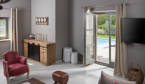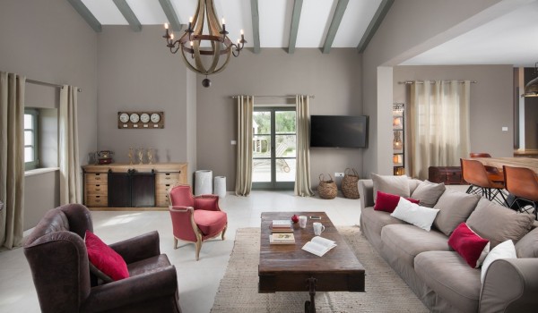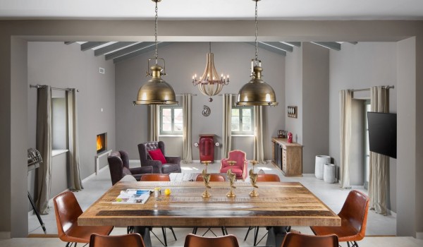 При входе в хорватскую роскошную виллу White Mansion 2 для отдыха и аренды в Истрии, вы попадаете в кондиционированную гостиную, где находится мягкий диван, кресла, телевизор, камин, а интерьер украшен рустикальными деталями. В гостиной также есть длинный обеденный стол с стульями, и это пространство соединено с современной, полностью оборудованной кухней с островом и барными стульями. Кухня оборудована посудой, холодильником, духовкой, микроволновой печью, холодильником, чайником, посудомоечной машиной и другими современными устройствами, которые позволяют готовить любое блюдо без проблем.
