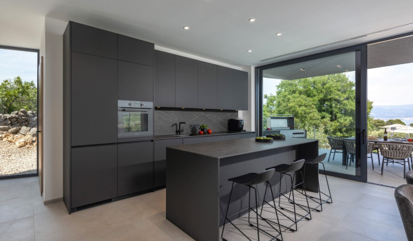 Роскошная вилла Крк 1 Врбник с обогреваемым бассейном и сауной предлагает просторную гостиную с кондиционером и теплым полом, роскошными диванами для отдыха, умным телевизором, Netflix, колонками Sonos, современной полностью оборудованной кухней с кухонным островом и 3 барными стульями. Кухня оснащена всеми необходимыми приборами для приготовления пищи, включая духовой шкаф, плиту, микроволновую печь, холодильник, морозильник, тостер, машину для льда, посудомоечную машину, столовые приборы, стаканы, кофемашину, гриль и кухонные полотенца.