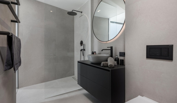 На первом этаже есть меньшая спальня с односпальной кроватью и столом, подходящая для детей и молодых людей, так как в ней есть повышенная кровать в стиле двухъярусной кровати для одного человека. Вилла имеет 3 роскошных ванных комнаты и 1 туалет для гостей на первом этаже.