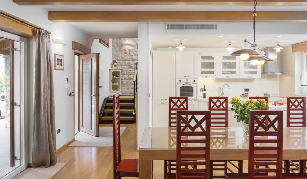 Роскошный хорватский дом для отдыха занимает площадь 265 квадратных метров жилой площади и находится на участке общей площадью 20 000 квадратных метров, из которых гостям доступно 7 000 квадратных метров. Роскошная вилла с бассейном состоит из 2 этажей: первого и второго, связанных внутренней лестницей.