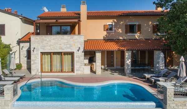 Роскошная хорватская вилла Labin Palace I с бассейном для отдыха и аренды с друзьями и семьей идеально подходит для роскошного размещения до 8 человек.