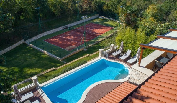 На просторной территории помимо дома для аренды находится дом, в котором проживает хозяин. Конечно, собственный вход, парковка и ограда обеспечивают полную конфиденциальность и уединение для гостей виллы Labin Palace I. На территории также есть мини-ферма с домашними животными, а также фруктовый сад и огород, которые гости могут использовать. Дополнительной особенностью этой красивой территории, особенно для любителей активного отдыха, являются многочисленные рекреационные удовольствия, такие как теннисный корт с освещением, поле для гольфа, настольный теннис и множество троп для походов и пеших прогулок. Гостям предоставляется базовое снаряжение для гольфа (клюшки и мячи), ракетки для настольного и обычного тенниса.
