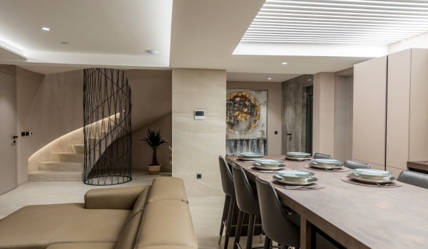Эта роскошная квартира занимает нижние два этажа этой виллы в аренду и состоит из современной полностью оборудованной кухни, столовой, гостиной, четырех спален с двуспальными кроватями и пятью ванными комнатами, четыре из которых с прямым доступом из спален и одной общей. Кроме того, гостям предоставляется частный бассейн, расположенный на террасе, а также общий тренажерный зал и сауна.