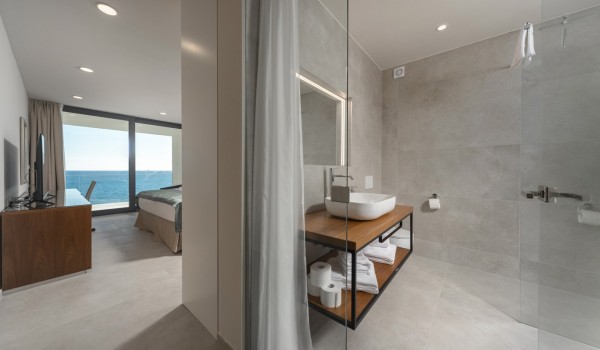 Гламурная стеклянная лестница из столовой ведёт на первый этаж к другим спальням. В главной спальне есть 2 двуспальные кровати, каждая из которых предназначена для 1 человека, и ванная комната с ванной и душевой кабиной. Остальные 3 спальни имеют двуспальные кровати и примыкающие ванные комнаты с душем. Как и на цокольном этаже, все спальни смотрят на море, а с их балконов открывается великолепный вид.