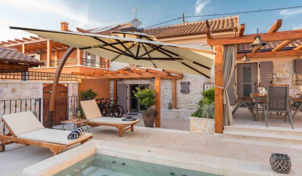 Вилла роскошь c гидромассажной джакузи Finessa Skradin 2 расположена на участке площадью 1500 м2, а жилая площадь составляет 120 м2. Она расположена на 2 этажах: на первом этаже и на втором этаже.
