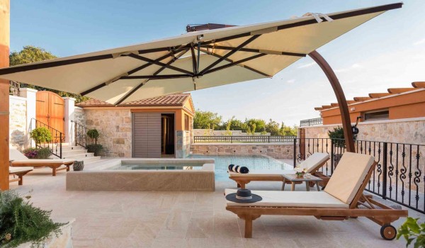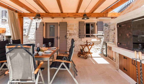 Роскошная Хорватская вилла в аренду Finessa Skradin 2 привлекает внимание частным подогреваемым бассейном площадью 32 м2 в яркой синей гамме и гидромассажной джакузи, окруженной далматинскими растениями. После освежения от жары лета расслабьтесь на элегантных шезлонгах под зонтом с вашим любимым бокалом вина. Каменный дом с сауной нашел свое идеальное место рядом с бассейном для полного увлажнения и восстановления организма. Крытая летняя кухня с камином и обеденным столом предназначена для всех, кто любит готовить вкусные блюда на свежем воздухе.