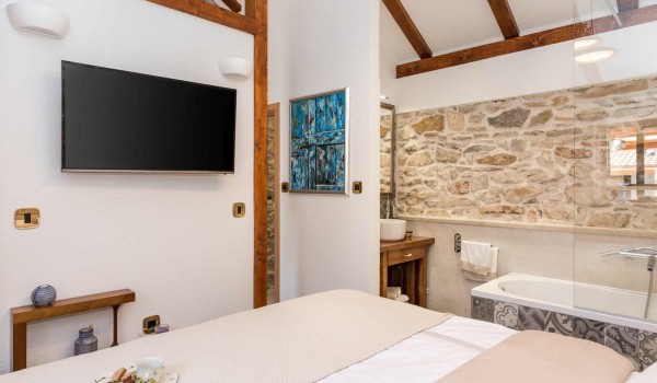 Роскошная Хорватская вилла с Частный бассейном Finessa Skradin 2 имеет 2 спальни и 2 ванные комнаты с ванной. Она подходит для размещения 6 человек (4+2).