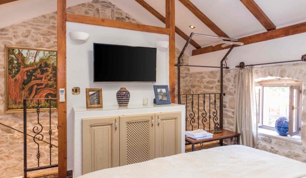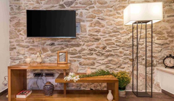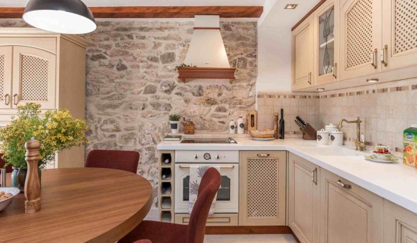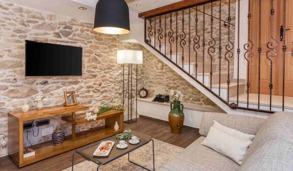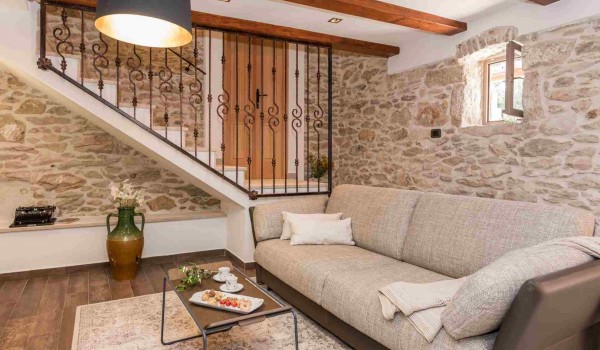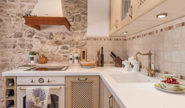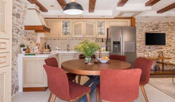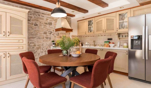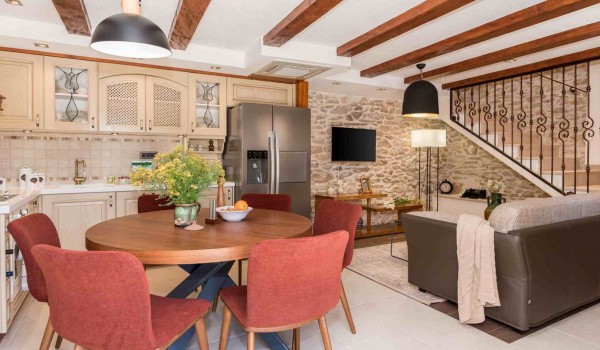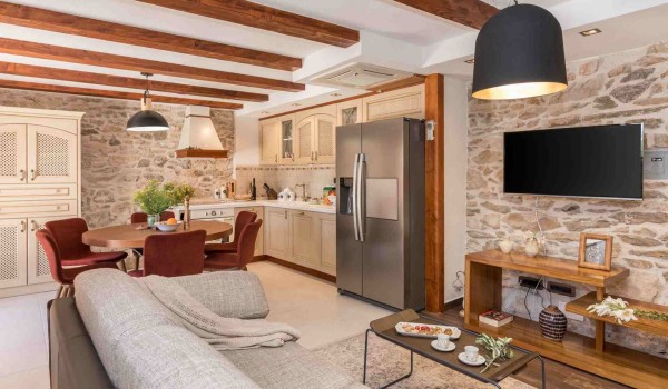 Войдя на пронизанный солнечными лучами первый этаж, вы будете в восторге от каменных стен и современных элементов и мотивов, которые способствуют исключительному стилю роскошной виллы Finessa Skradin 2. Гостиная, где вы будете с удовольствием расслабляться, оборудована уютным диваном и ЖК-телевизором. Ниже находится полностью оборудованная кухня в средиземноморском стиле и обеденная зона с круглым столом и стульями.