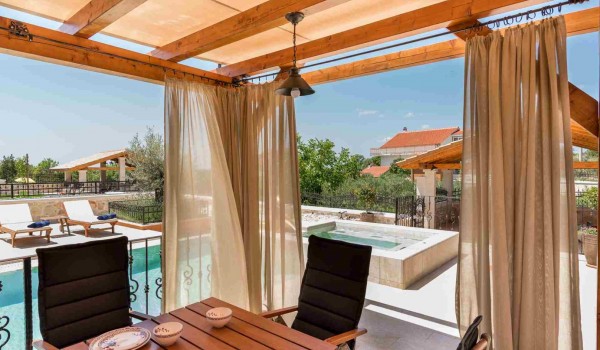 Вилла роскошь Finessa Skradin 2 с частным подогреваемым бассейном площадью 32 м2, гидромассажной джакузи и сауной находится в сказочной деревне Бичине в живописном средиземноморском городе Скрадин, расположенном на расстоянии 2,9 км от его центра. В непосредственной близости от роскошной виллы Finessa Skradin 2 находится галечный пляж Скрадинка на расстоянии 3,1 км. Помимо своего внешнего вида, роскошная вилла Finessa Skradin 2 восхищает своим расположением, которое позволяет посетить знаменитый красивый Скрадинский бук в национальном парке Крка. Роскошная вилла Finessa Skradin 2 - это аутентичное сочетание роскоши и деревенского стиля, которое излучает очарование, тепло и индивидуальность.